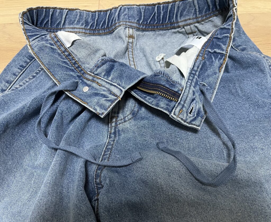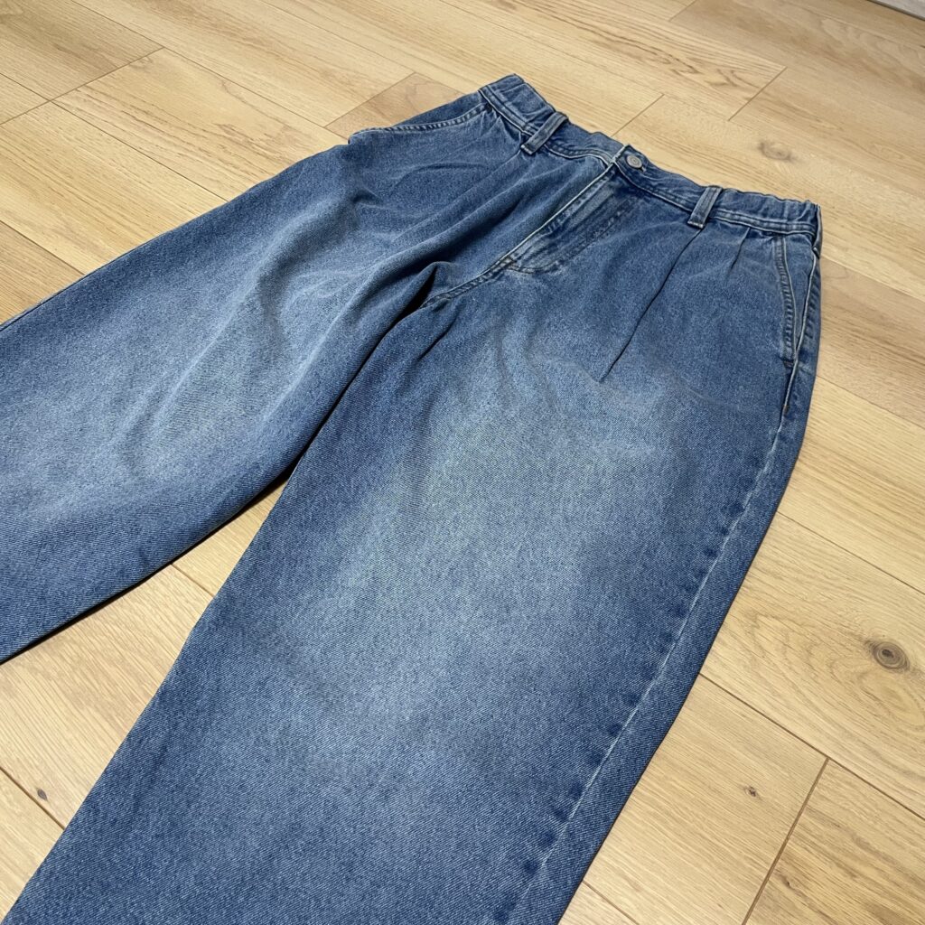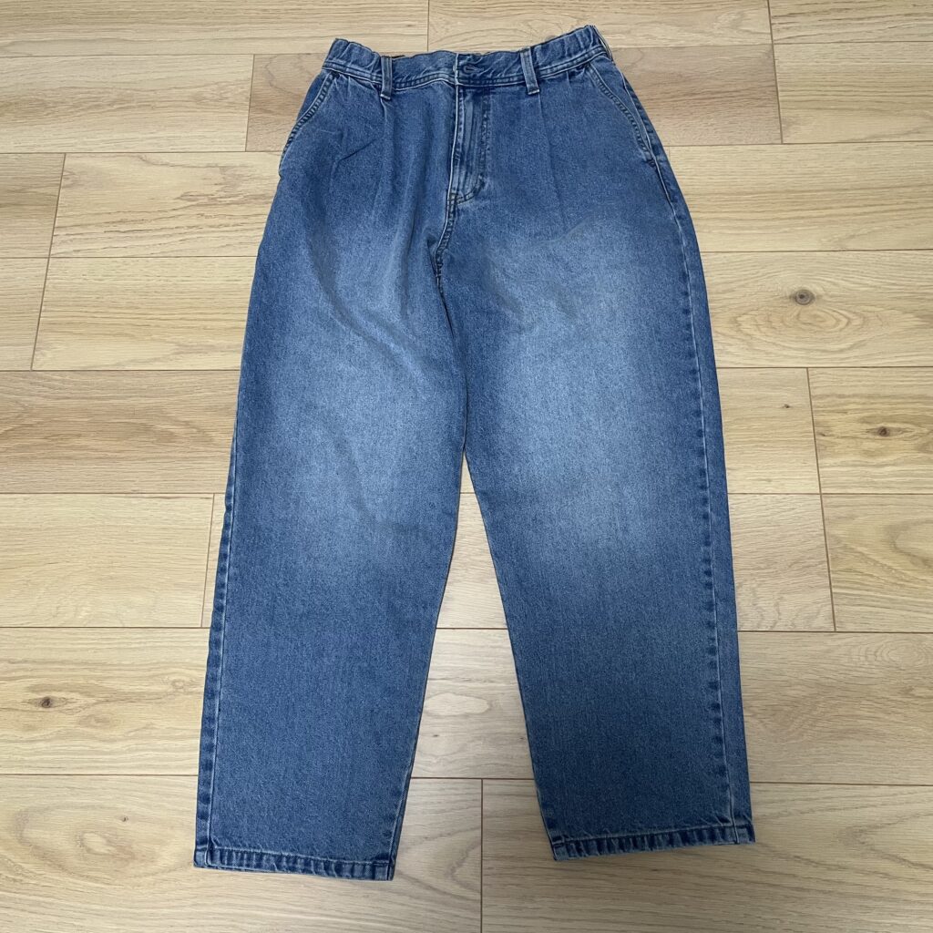 普段はMサイズを着用する機会が多いですがGUのデニムキャロットパンツはワンサイズ下げて着用しています。