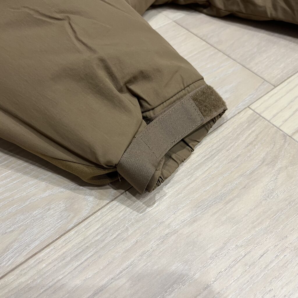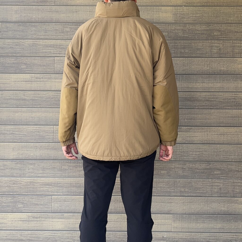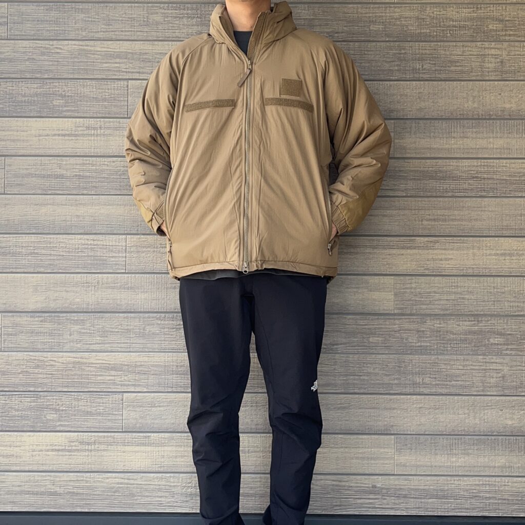 「ECWCS GEN Ⅲ レベル7 PRIMALOFTジャケット」は大きめに設計されており、普段私はMサイズを着用する機会が多いですが今回はワンサイズ下げて着用しております。