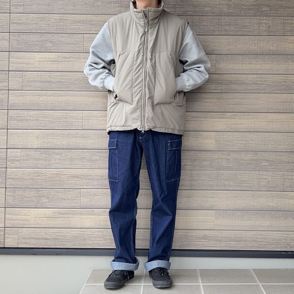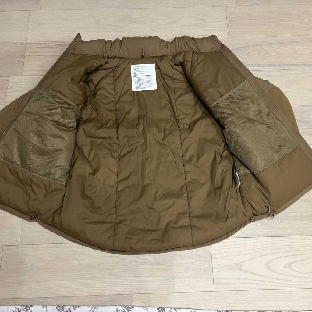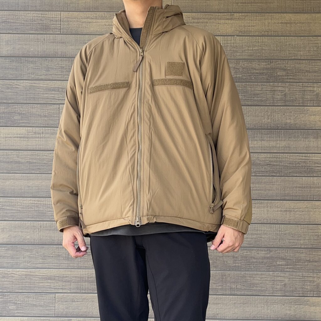 「ECWCS GEN Ⅲ レベル7 PRIMALOFTジャケット」は大きめに設計されており、普段私はMサイズを着用する機会が多いですが今回はワンサイズ下げて着用しております。